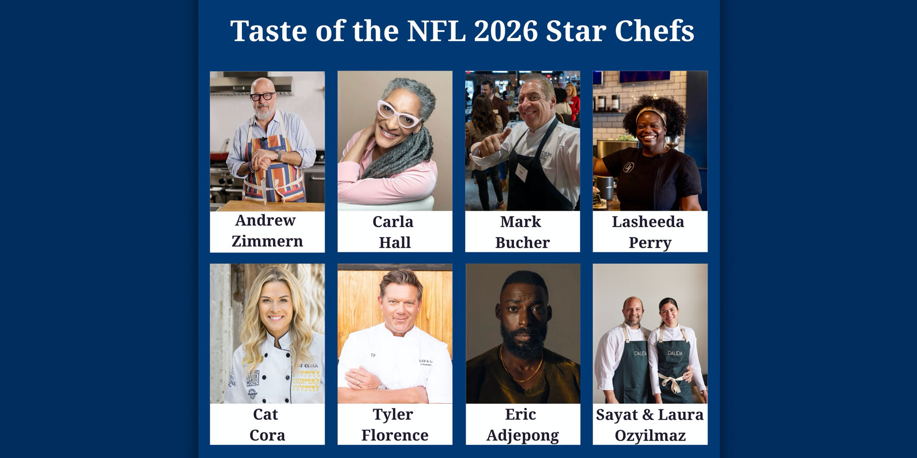San Francisco’s reputation as a global food capital takes center stage as Taste of the NFL showcases the region’s extraordinary culinary diversity. Event hosts Chefs Andrew Zimmern, Carla Hall, Lasheeda Perry, Mark Bucher, and Sayat and Laura Ozyilmaz – along with special guest chefs Cat Cora and Tyler Florence –lead a powerhouse roster of over 20 acclaimed national and local chefs whose artistry has defined dining in the Bay Area and across the country. Featured restaurants include Abacá, Al Pastor Papi, Café Sebastian, Cocobreeze, Dalida, Doppio Zero, Eylan, Maria Isabel, Meski, Miller & Lux, Minnie Bell’s Soul Movement, Nopa, Parche, Shoji, 7 Adams, Reem’s California, Señor Sisig, Stateline Road Smokehouse, Tarts de Feybesse, and Willi’s Seafood. The Sonoma County Winegrowers will uncork the locally sourced flavors of nearby wine country, offering curated tastings and expert pairings that showcase the region’s world-class vintages.